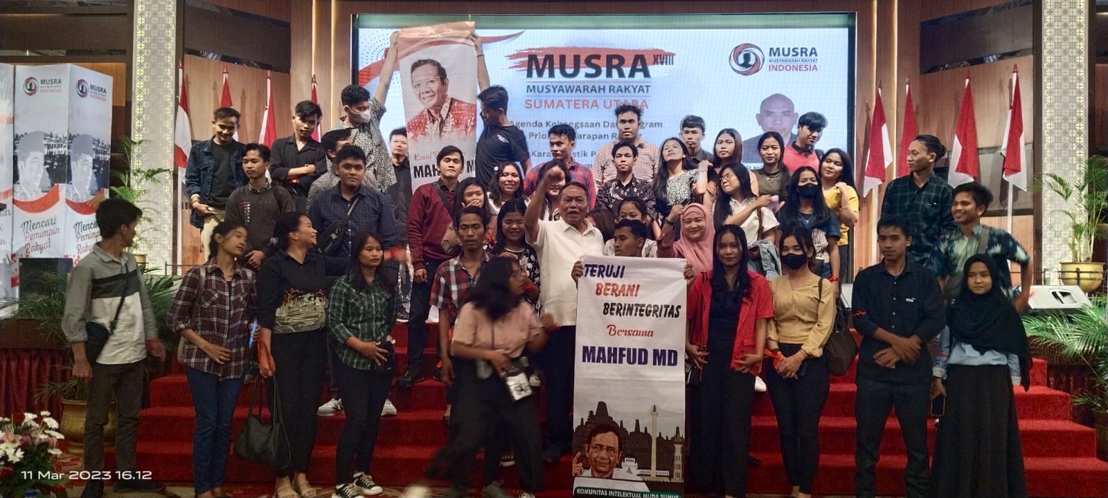 Dalam sesi penyampaian pendapat, pendukung Mahfud nampak mendominasi. Misalnya Teuku dari Lembaga Masyarakat Adat Kesultanan Deli. Dia menilai, Indonesia perlu pemimpin yang paham hukum. “Insyaallah Pak Mahfud MD yang bisa menyelesaikan persoalan tanah ada di Medan, Sumut ini,” kata dia sembari membawa isu lokal.