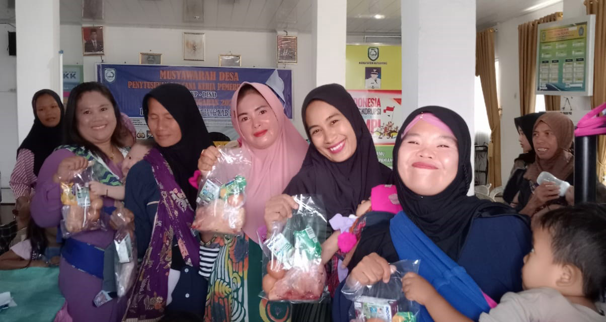 Kades menuturkan “Mulai bulan Januari hingga bulan September ini Pemerintah desa telah mempersiapkan makanan tambahan bagi bumil (ibu hamil), pendampingan calon pengantin dan setiap bulannya kita mempersiapkan makanan seperti telur,daging ayam serta biskuit kesemuanya kita serahkan secara langsung melalui tim penggerak PKK desa dan didampingi penyuluh dari puskesmas,” tegas Kades.