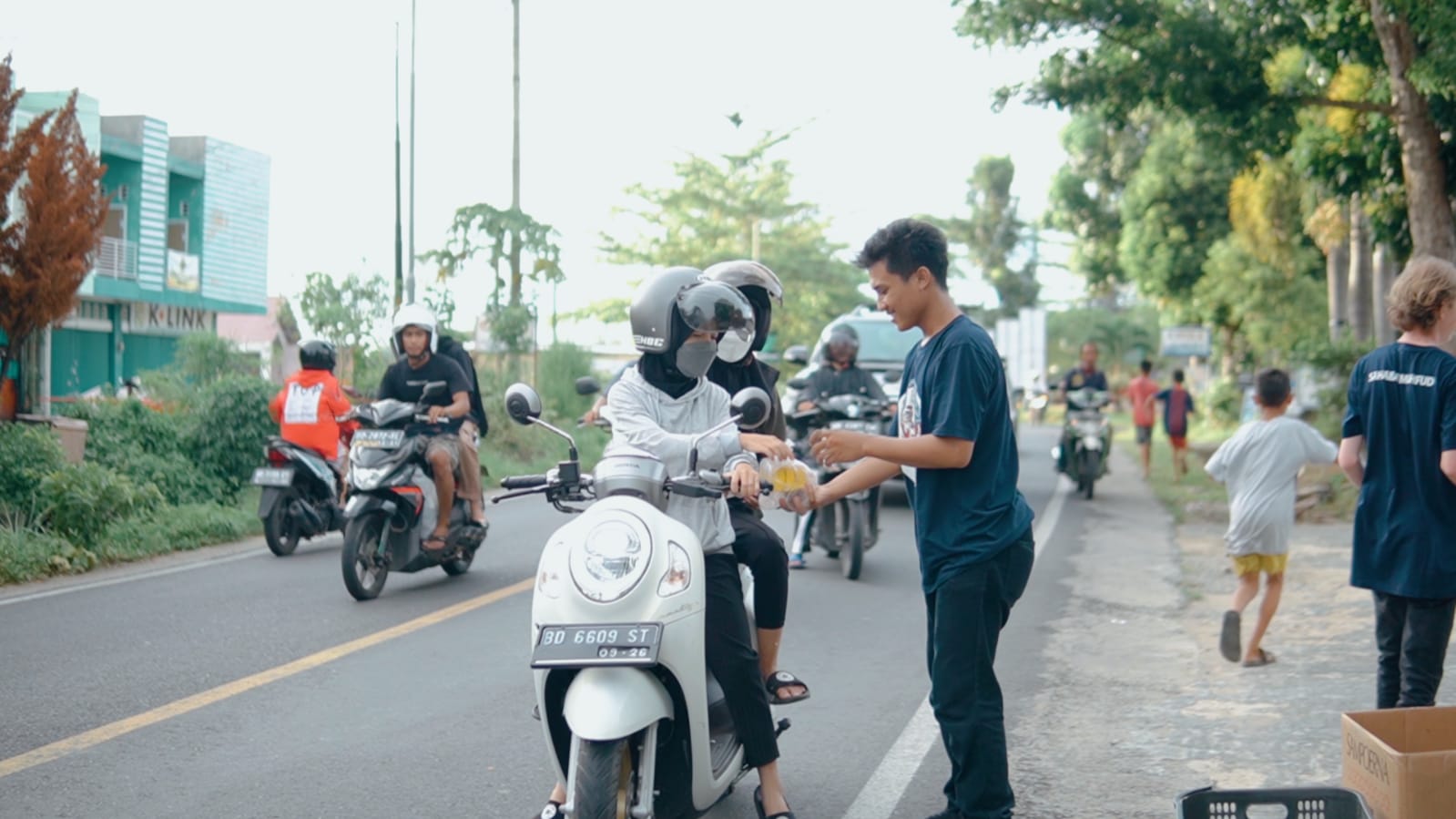 Berandang com- Komunitas Sahabat Mahfud Bengkulu bagi-bagi takjil gratis kepada warga, pengendara kendaraan, dan masyarakat yang melintas di Jalan Batang Hari Nusa Indah Ratu Agung Kota Bengkulu.