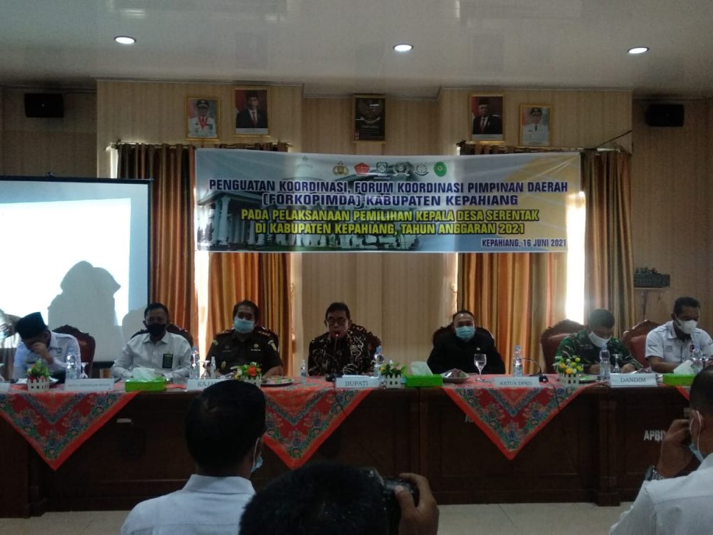 Berandang.com- Kepahiang. Jabatan Kepala Desa di Kabupaten Kepahiang akan berakhir. Demikian informasi disampaikan kadis PMD Kabupaten Kepahiang saat melaksanakan rapat penguatan koordinasi bersama Forum Koordinasi Pimpinan Daerah (Forkopimda) terkait pelaksanaan Pilkades serentak di Kabupaten Kepahiang, yang dilaksanakan diruang rapat Sekretariat Daerah Kabupaten Kepahiang, Rabu (16/6/2021).
