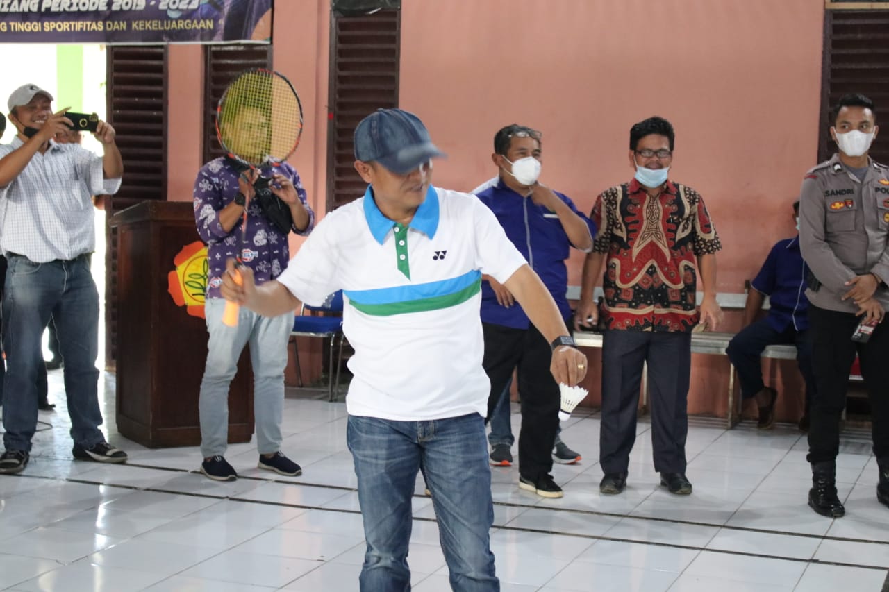 Berandang.com- Kepahiang. Dalam rangka menjaring atlit Bulu Tangkis di Kabupaten Kepahiang, Persatuan Bulutangkis Seluruh Indonesia (PBSI) Kabupaten Kepahiang Menggelar turnamen Bulu Tangkis di Gedung Bulu Tangkis SMK/SPP pertanian kelobak pada Kamis (01/07/2021). Pada kesempatan ini acara dibuka secara langsung oleh Ketua DPRD Kabupaten Kepahiang Windra Purnawan,SP ditandai dengan pukulan pertama kejuaran Bulu Tangkis PBSI 2021.