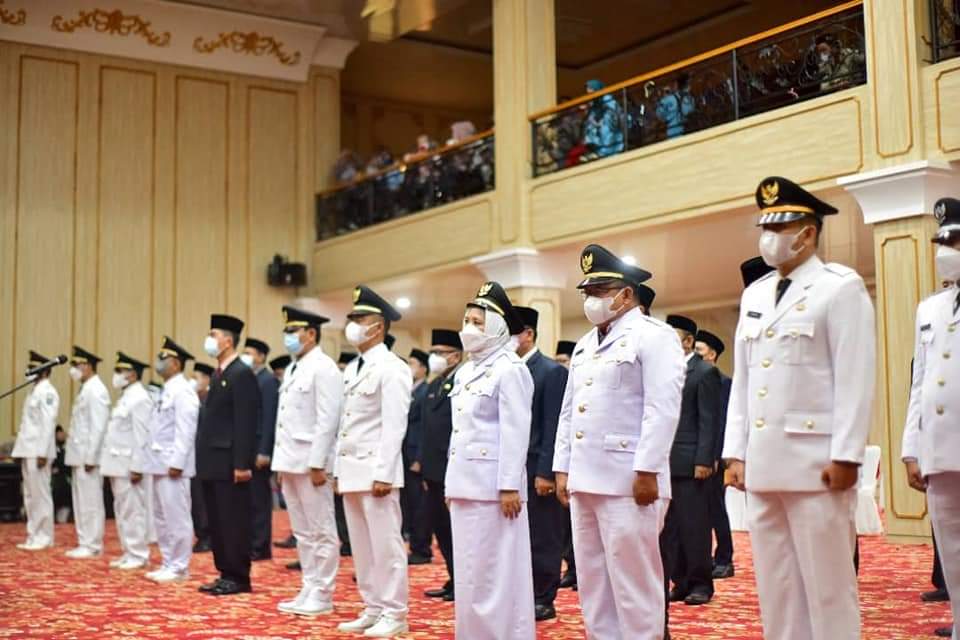 Berandang.com- Musi Rawas. Bupati Kabupaten Musi Rawas Hj Ratna Machmud melantik dan mengambil sumpah/janji jabatan, Pejabat Pimpinan Tinggi Pratama, Administrator, Pengawas, Kepala Sekolah dan Camat di Auditorium Pemkab Musi Rawas (Jumat, 24/09/2021). Pelantikan berjalan dengan khidmat dan lancar.