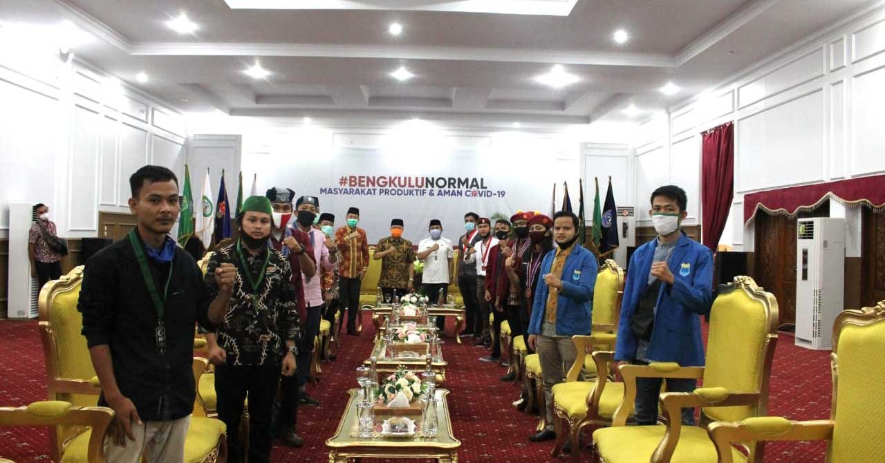 Atas persoalan tersebut, Gubernur Bengkulu Rohidin Mersyah menerima audensi gabungan organisasi Mahasiswa Cipayung Plus Bengkulu (HMI, PMKRI, GMKI, GMNI, PMII, IMM, KMMI), Jum’at (12/6) di Gedung Daerah Balai Raya Semarak Bengkulu.