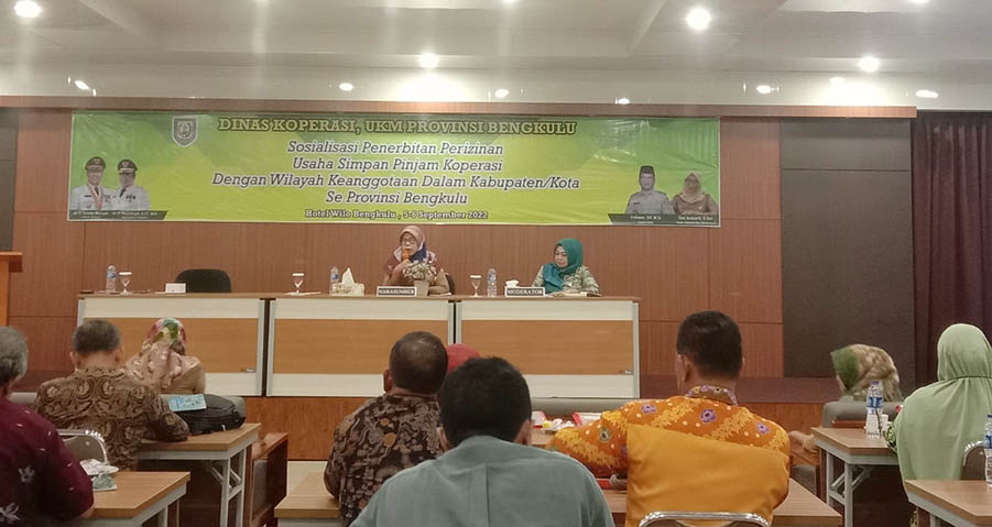 Berandang.com- Bengkulu. Dinas Koperasi dan UKM Provinsi Bengkulu menggelar sosialisasi terhadap penertiban perizinan dalam usaha simpan pinjam koperasi dengan wilayah keanggotaan di Kabupaten/kota se- Provinsi Bengkulu. Acara tersebut digelar langsung di Willo Hotel Penurunan Kota Bengkulu selama dua hari. Selasa (06/09/2022
