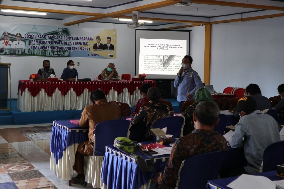 Berandang.com- Dinas Pemberdayaan Masyarakat Desa (PMD) Kabupaten Kepahiang gelar sosialisasi penyelenggaraan Pemilihan Kepala Desa secara serentak tahun 2021 di Kecamatan Bermani Ilir Kabupaten Kepahiang. Selasa (27/07/2021)