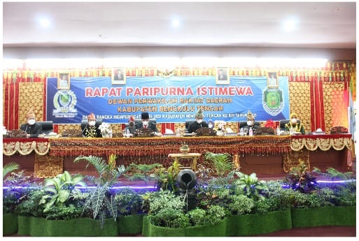 Sebagai Penyelenggara Rapat Paripurna Istimewa yaitu Ketua DPRD Budi Suhartono, S,Sos., wakil Ketua 1 Fery Haryadi, S.Sos., wakil Ketua 2 Evi Susanti, S.Ip dan Semua Anggota DPRD Kabupaten Bengkulu Tengah.