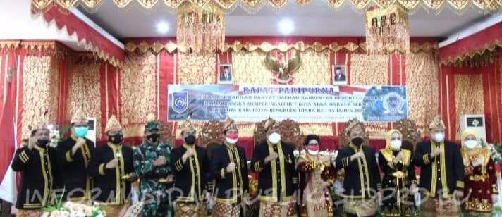 Rapat paripurna dilaksanakan secara sederhana dan tetap mentaati protokol kesehatan yang ketat, dalam Rapat Paripurna kali ini dipimpin lansung oleh ketua DPRD kabupaten Bengkulu Utara Sonti Bakara, SH yang didampingi waka I Juhaili, Sip.