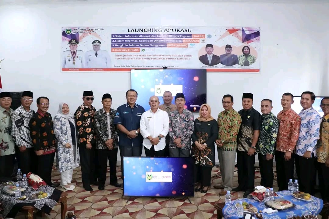 Berandang.com – Bupati Bengkulu Selatan telah laksanakan kegiatan launching 4 (empat) Aplikasi yaitu SIALAP (Sistem Informasi Abensi dan Laporan Kinerja Pegawai), Gateway CintaBS, BESALAMAN (Bengkulu Selatan Dalam Genggaman) dan SRIKANDI di Aula Pertemuan Balai Sekundang.Kamis,01/12/2022.