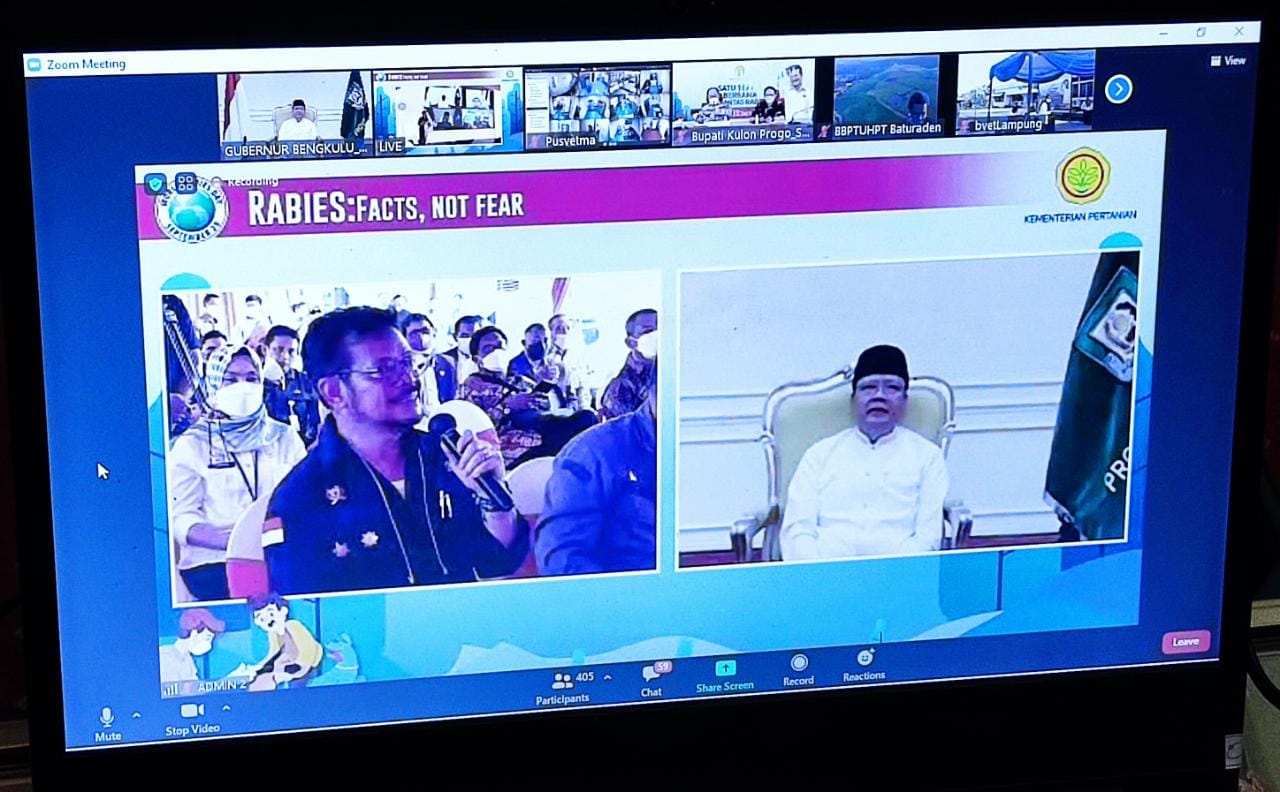 Hal ini diapresiasi langsung oleh Menteri Pertanian Menteri Pertanian RI, Syahrul Yasin Limpo, saat Dialog Interaktif Menteri Pertanian RI Bersama Gubernur Bengkulu, Gubernur Sumsel, Gubernur Jateng, Gubernur NTB dan Beberapa Bupati Terkait Program Pengendalian Rabies Peringatan World Rabies Day (WRD) Tahun 2021, Jumat (8/10/2021).