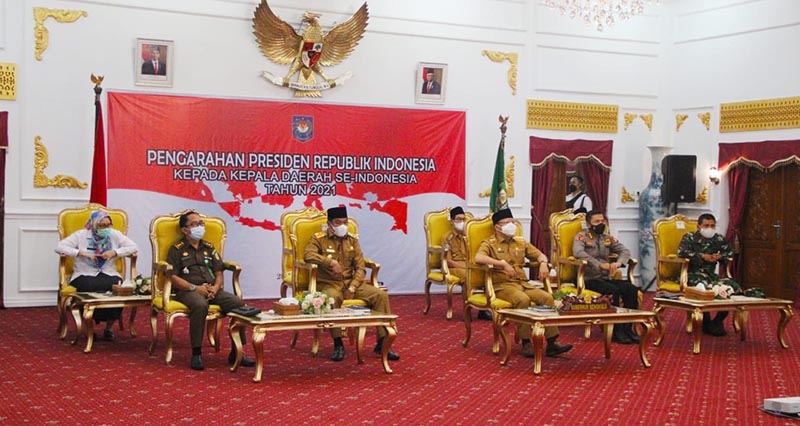 “Kemudian terkait dengan pelaksanaan vaksinasi Covid-19, vaksin yang telah ada di kabupaten-kota saya minta betul bupati dan walikota berkoordinasi dengan Forkopimda diawali TNI-POLRI harus segera dilaksanakan sesuai target sasaran tidak ada pilihan lain,” imbuhnya.
