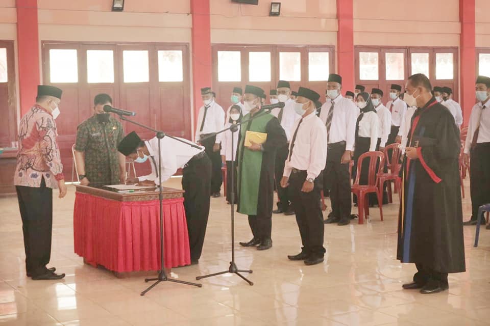 berandang.com- Bupati Seluma Erwin Octavian, SE. melantik sebanyak 274 orang pengurus Badan Permusyawaratan Desa (BPD) dari 54 desa di Kabupaten Seluma, Kamis (29/7/2021) dilaksanakan di Balai Adat Kabupaten Seluma dengan menerapkan Protokol Kesehatan (Prokes) COVID-19 secara ketat.