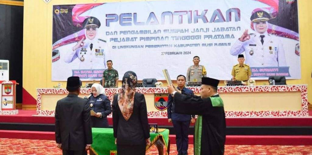 Berandang.com- Musi Rawas. Minta pejabat yang dilantik bekerja sesuai dengan aturan dan melayani masyarakat dengan sebaik-baiknya, sehingga dirasakan manfaatnya. Demikian disampaikan Bupati Musi Rawas, Hj Ratna Machmud melantik dan mengambil Sumpah/Janji Para Pejabat Pimpinan Tinggi Pratama di Lingkungan Pemerintah Kabupaten Musi Rawas, Selasa (27/02/2024) di Auditorium Pemda Musi Rawas.