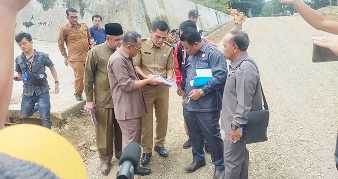 Ketua DPRD Kepahiang Windra Purnawan, SP, bersama Unsur Komisi III diantaraya Ansori M (Ketua), Drs. Basing Ado (Waka), Eko Guntoro, SH dan Anudin, S.Sos sidak kegiatan pembangunan infrastruktur jalan Hotmix samping Masjid Agung Kepahiang.