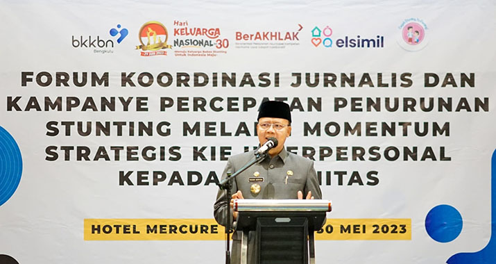 Gubernur Bengkulu Rohidin Mersyah saat membuka Forum Koordinasi Jurnalis dan Kampanye Percepatan Penurunan Stunting melalui KIE Komunitas, Selasa (30/5/2023), menyebutkan bahwa angka stunting di atas masih sangat menghawatirkan.
