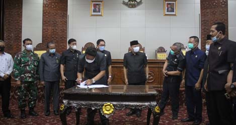 Usai pengumuman berkahirnya masa jabatan Gubernur dan Wakil Gubernur Bengkulu Tahun 2016-2021, dilanjutkan Penandatangan Surat Keputusan DPRD Provinsi Bengkulu sebagai bahan kelengkapan untuk diusulkannya pemberhentian Gubernur dan Wakil Gubernur Bengkulu kepada Presiden RI melalui Menteri Dalam Negeri, dengan disaksikan Gubernur Bengkulu, ketua-ketua fraksi serta Forkopimda Provinsi Bengkulu. *(Adv)