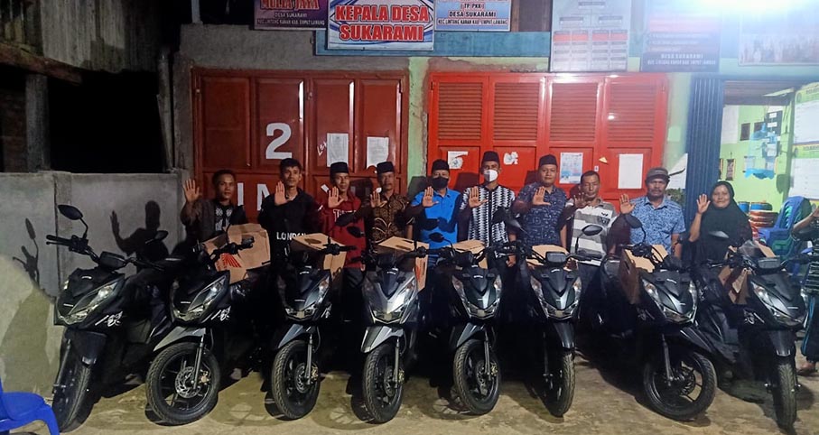 Berandang.com – Empat Lawang. Seluruh perangkat desa mendapat Durprize dari Kepala Desa Sukarami, Kecamatan Lintang Kanan, Kabupaten Empat Lawang, Provinsi Sumatera Selatan, kejutannya setiap perangkat menerima 1 unit kendaraan bermotor. Rabu (11/08/21).