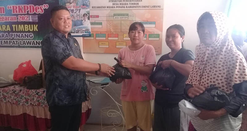 Berandang.com – Empat Lawang. Kepala Desa Muara Timbuk, Kecamatan Muara Pinang, Kabupaten Empat Lawang, Provinsi Sumatera Selatan, membagi-bagikan ratusan sembako kepada warganya, Senin (10/05/21).