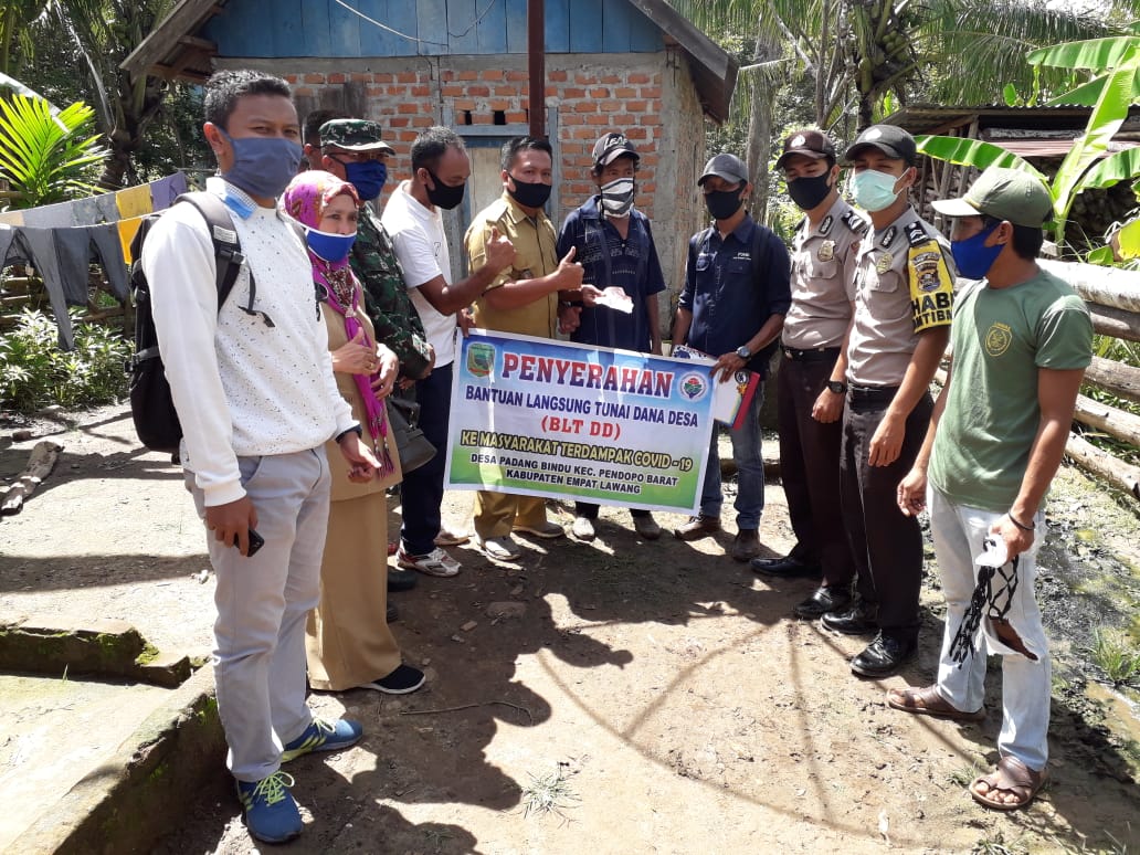 Berandang.com- Empat Lawang. Kepala Desa Padang Bindu Kecamatan Pendopo Barat Kabupaten Empat Lawang Provinsi Sumatera Selatan, salurkan Bantuan Langsung Tunai (BLT) tahap I kepada warga dengan cara mendatangi langsung kerumah mereka dan sebagian di depan kantor desa. Selasa (19/05/2020).