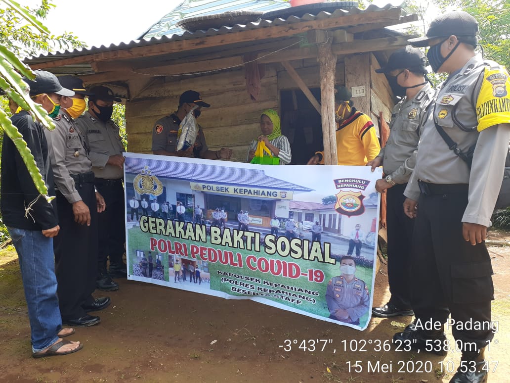Dalam bentuk kepedulian terhadap masyarakat Polsek Kepahiang telah membagikan 20 paket sembako kepada warga masyarakat yang ada di wilayah hukum Polsek Kepahiang. Penyaluran bantuan dilaksanakan secara visit door to door ke rumah warga yang tidak mampu di masing masing desa dan kelurahan yang ada di kecamatan Kepahiang. Kegiatan berjalan sesuai rencana dan selesai pukul 12.25 wib. *(UT)