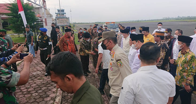 Tampak Kasatpol PP Murlin Hanizar menyambut kedatangan mantan Wakil Presiden RI Jusuf Kalla dan mendampingi hingga acara usai.