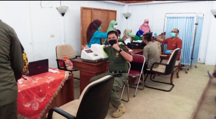 Kegiatan vaksinasi ini diikuti langsung oleh Kasat Pol PP dan seluruh ASN/THL yang sudah memenuhi syarat.