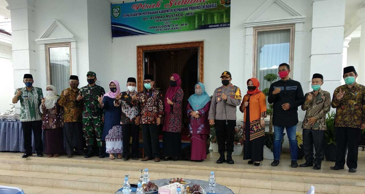 Kepala BPN Kepahiang (penjabat lama) Drs. Achmad Mustafid, M.Si akan pindah tugas di BPN Kabupaten Kebumen sedangkan pengganti beliau (Kepala BPN Kepahiang/penjabat baru) Jamaluddin, SH, MH.