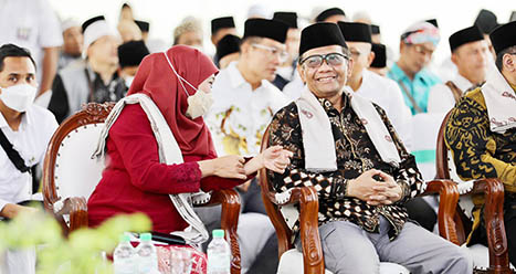 “Beliau sebetulnya kelasnya Masyayikh, Kyai. Tapi seperti halnya pak Alwi Shihab, pak Nasarudin Umar, juga pak Quraish Shihab, beliau seorang guru besar, seorang kyai, tapi lebih senang dipanggil namanya. Itulah sosok almukarrom bapak Profesor Dr. Kyai Haji Moh. Mahfud MD,” tambah Khofifah yang juga dikenal sebagai sahabat dekat Mahfud ini.