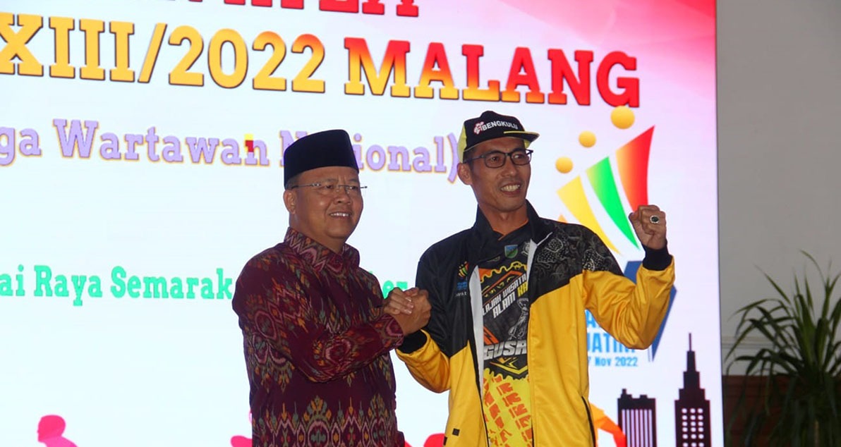 Berandang.com- Kontingen Atlet Pekan Olahraga Wartawan Nasional (Porwanas) Bengkulu resmi dilepas oleh Gubernur Bengkulu Rohidin Mersyah di Balai Raya Semarak Bengkulu, Sabtu (19/11/2022).
