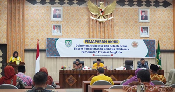 “Ini memamg tantangan bagi kita ke depan dan kami yakin seluruh jajaran Pemprov Bengkulu bisa melaksanakan SPBE dengan baik,” jelas R. A Denni usai membuka resmi Pemaparan Akhir Dokumen Arsitektur dan Peta Rencana Sistem Pemerintahan Berbasis Elektronik (SPBE) Pemerintah Provinsi (Pemprov) Bengkulu, di Ruang Pola Provinsi Bengkulu, Kamis (07/12).