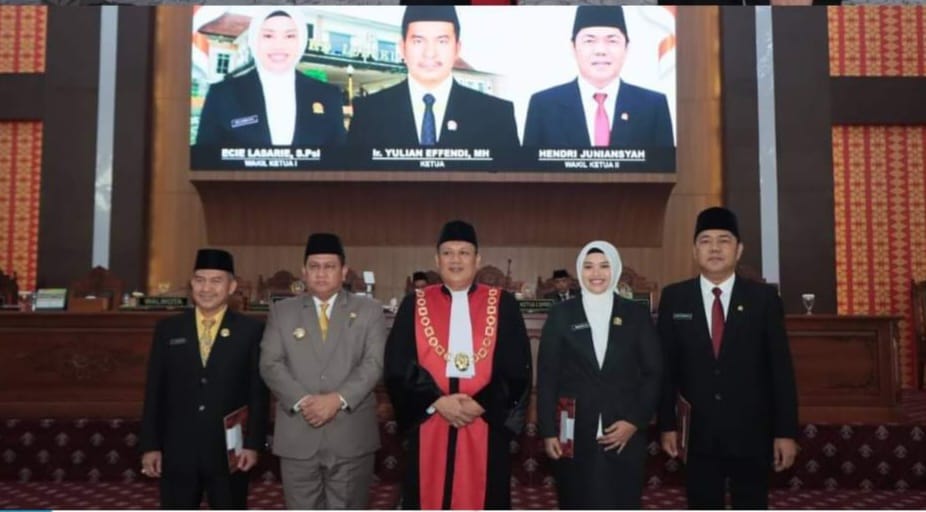 Berandang.com- LUBUKLINGGAU. Rapat paripurna DPRD Kota Lubuklinggau dalam rangka pengucapan sumpah/janji pimpinan ketua dan wakil ketua DPRD Kota Lubuklinggau masa jabatan 2024-2029 yang dihadiri Penjabat (Pj) Wali Kota Lubuklinggau, H Koimudin di gedung paripurna DPRD Kota Lubuklinggau, Rabu (23/10/2024).