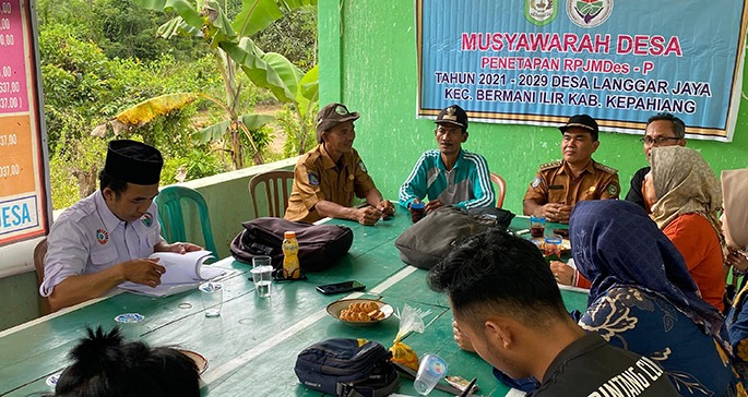 Musdes desa Langgar Jaya berlasung hikmat. Tampak hadir camat bermani ilir dan tenaga Ahli (TA) pendamping desa, konsultan perencana tahun 2021/2029.