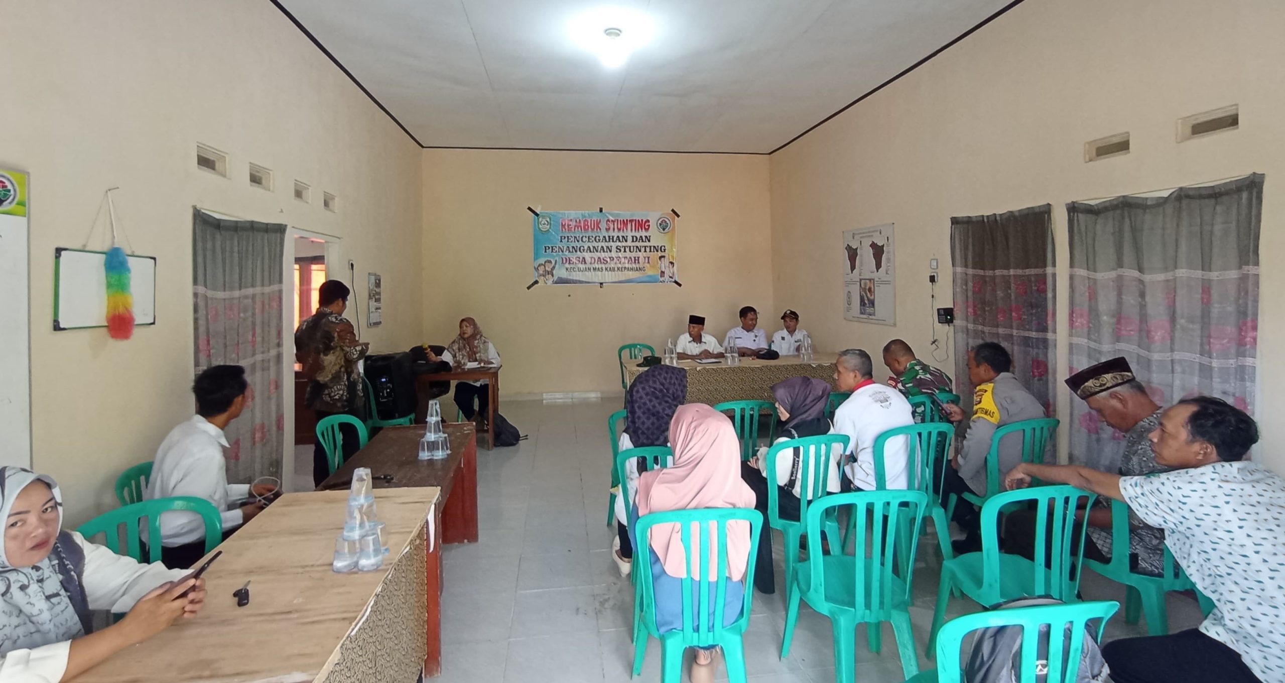 Agenda kegiatan rembuk stunting dihadiri Camat Ujan Mas, Kades Daspetah II, Bhabinkamtibmas, Babinsa, TP- PKK desa serta tamu undangan lainnya.