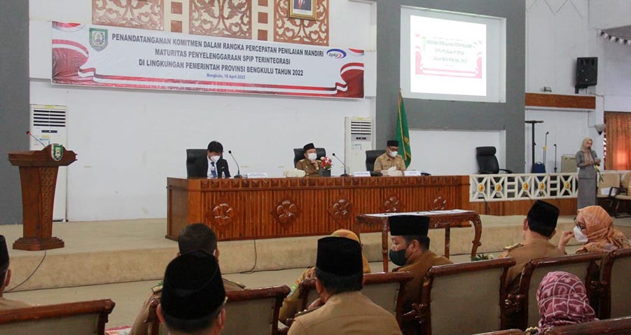 “Ini penandatanganan komitmen bersama dari seluruh OPD kita dan ditambah saya sebagai Sekda untuk melaksanakan amanat undang – undang, juga amanat peraturan pemerintah, lalu kita lakukan Sistem Pengendalian Intern Pemerintah dengan secara terintegrasi,” jelas Sekretaris Daerah Provinsi Bengkulu Hamka Sabri.