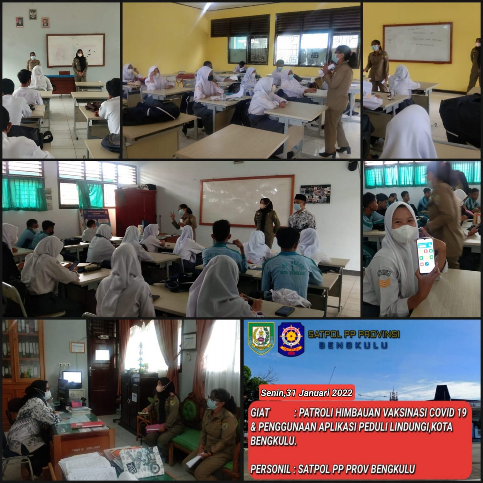 Berandang.com- BENGKULU. Satuan Polisi Pamong Praja (Satpol PP) Provinsi Bengkulu melakukan patroli ke sekolah, perkantoran, pelayanan public dan pusat perbelanjaan.