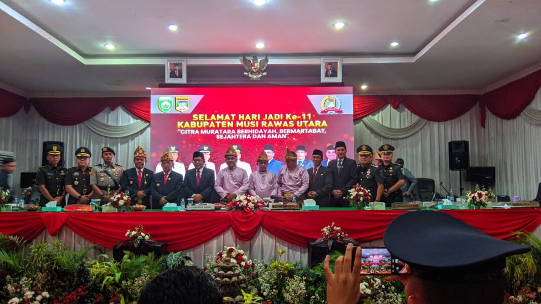 Berandang.com- Muratara – Peringatan Hari Ulang Tahun (HUT) ke-11 Kabupaten Musi Rawas Utara (Muratara) Dewan Perwakilan Rakyat Daerah (DPRD) Muratara menggelar Rapat Istimewa di ruang paripurna DPRD. Selasa (25/6/2024).