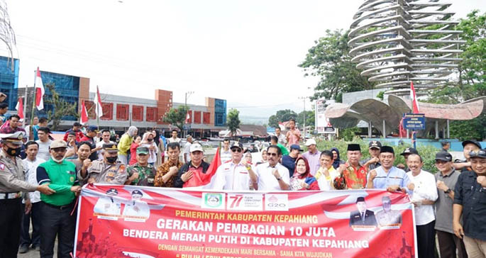“Pembagian bendera ini merupakan tindak lanjut program pemerintah pusat yaitu pembagian 10 juta bendera merah putih. Khusus untuk kabupaten Kepahiang kita bagikan 5000 lembar bendera merah putih”, katanya setelah membagikan bendera di Lapangan Tugu Kopi Kepahiang Jumat (12/8/2022).