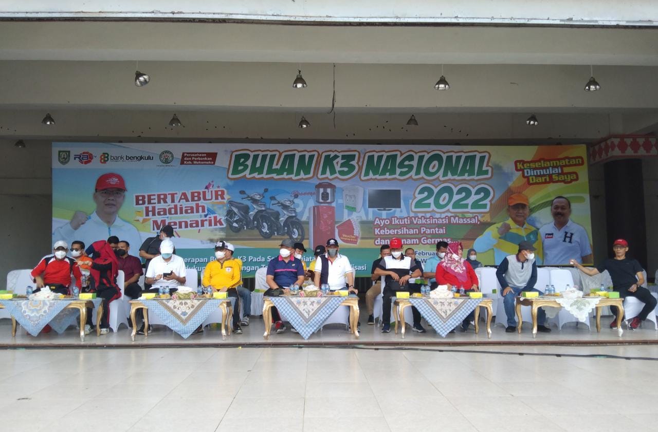 Berandang.com- BENGKULU. Dalam upaya meningkatkan keamanan dan keselamatan kerja, Disnaker Trans Provinsi Bengkulu kembali rayakan Bulan K3 yang meriah diikuti oleh seluruh perusahaan-perusahaan yang ada di Bengkulu.