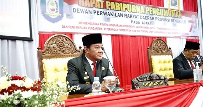 Acara berlangsung khidmat yang dipimpin langsung oleh Ketua DPRD Provinsi Bengkulu Ihsan Fajri di ruang rapat paripurna DPRD Provinsi Bengkulu dan dihadiri oleh seluruh anggota DPRD Provinsi Bengkulu serta Forkopimda.