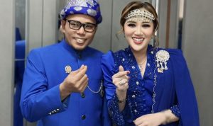 Suasana semakin meriah saat Sekretaris Daerah Fauzan Khoiri bernyanyi bersama Kepala Dinas Kesehatan yang juga Ketua Tim Penggerak PKK Bunda Hepy Safriani untuk menghibur penonton di Gedung Serbaguna Pemkab Empat Lawang. *(San)