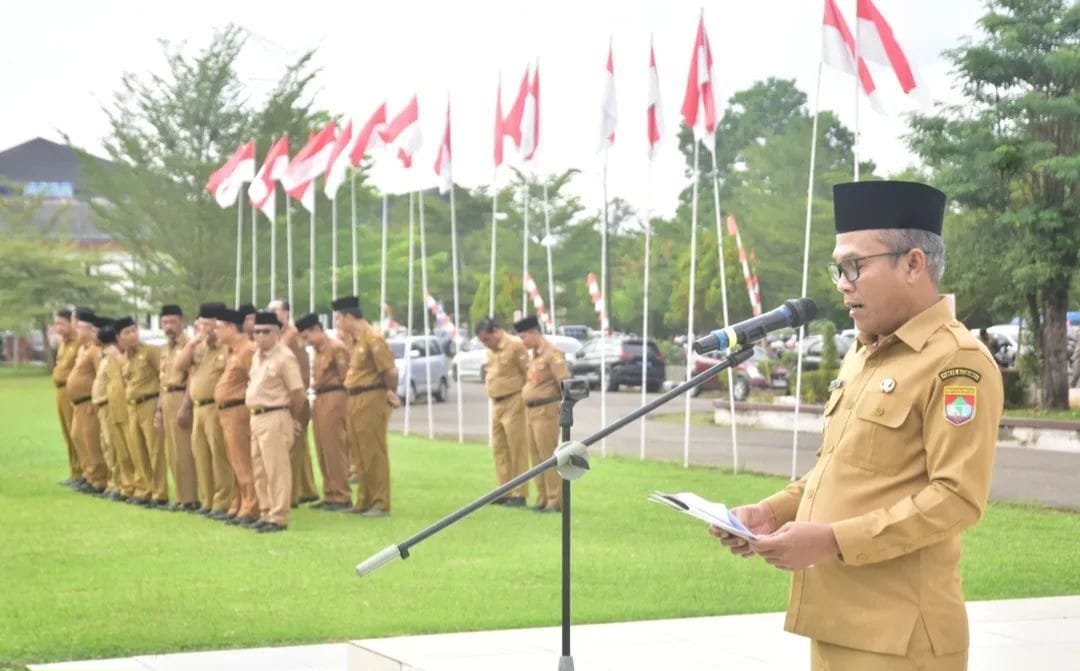 Berandang.com- Musi Rawas. Wakil Bupati Musi Rawas H. Suprayitno Pimpin Apel Pagi Bersama dan Menyerahkan Bingkisan bagi Pegawai Pegawai Negeri Sipil yang memasuki masa purna tugas TMT 1 Juli 2025 di Lingkungan Pemerintah Kabupaten Musi Rawas di Halaman Kantor Bupati Musi Rawas, Senin (07/07/2025).