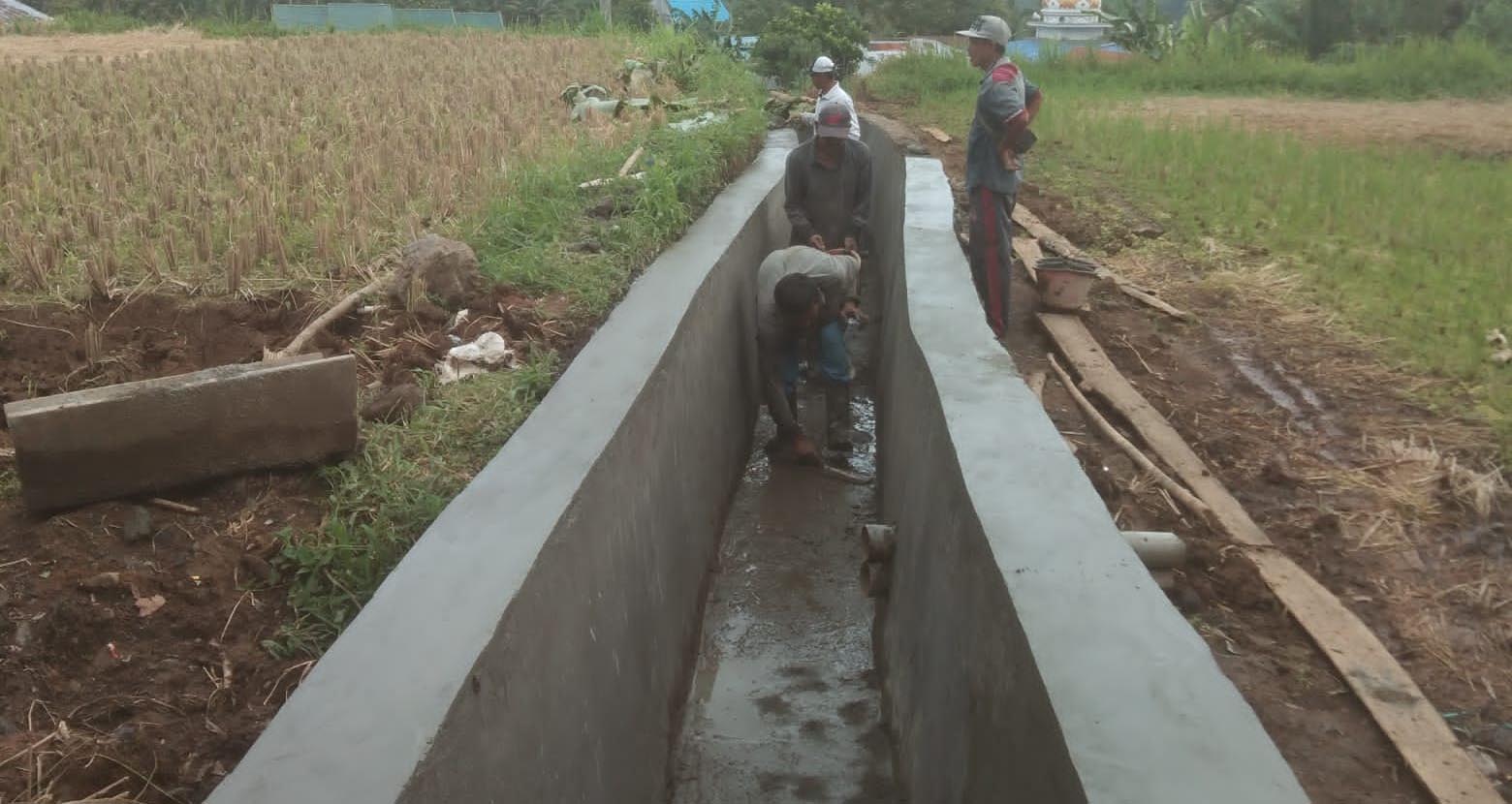 Terlihat pekerjaaan drainase di persawahan telah seratus persen dikerjakan sesuai dengan mekanisme. *(Adv/UT)