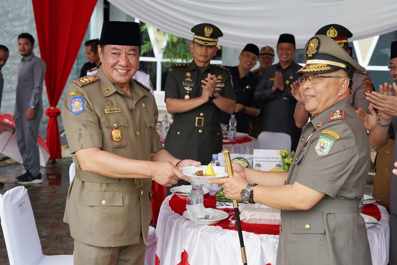 “Dirgahayu Satuan Polisi Pamong Praja (Satpol PP) ke-74 dan dirgahayu Satlinmas ke-62, kami haturkan rasa bangga dan penghargaan yang setinggi-tingginya kepada anggota Satpol PP dan Satlinmas atas pengabdian dalam mengembangkan tugas dan memberikan perlindungan serta pelayanan yang tulus demi mewujudkan rasa tertib, tentram dan aman kepada masyarakat,” ungkap Wagub Rosjonsyah.
