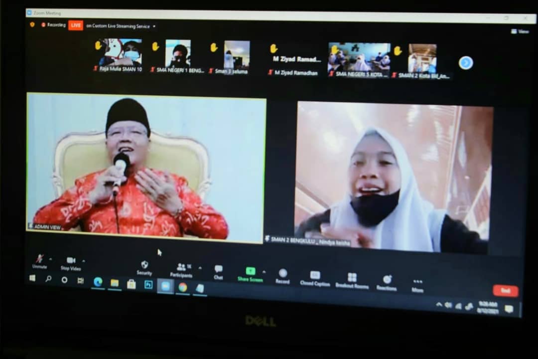 “Anak-anak ku sekalian, pergunakanlah media sosial itu secara sehat dan jadilah pengguna internet yang produktif,” amanat Gubernur Rohidin, melalui video conference.