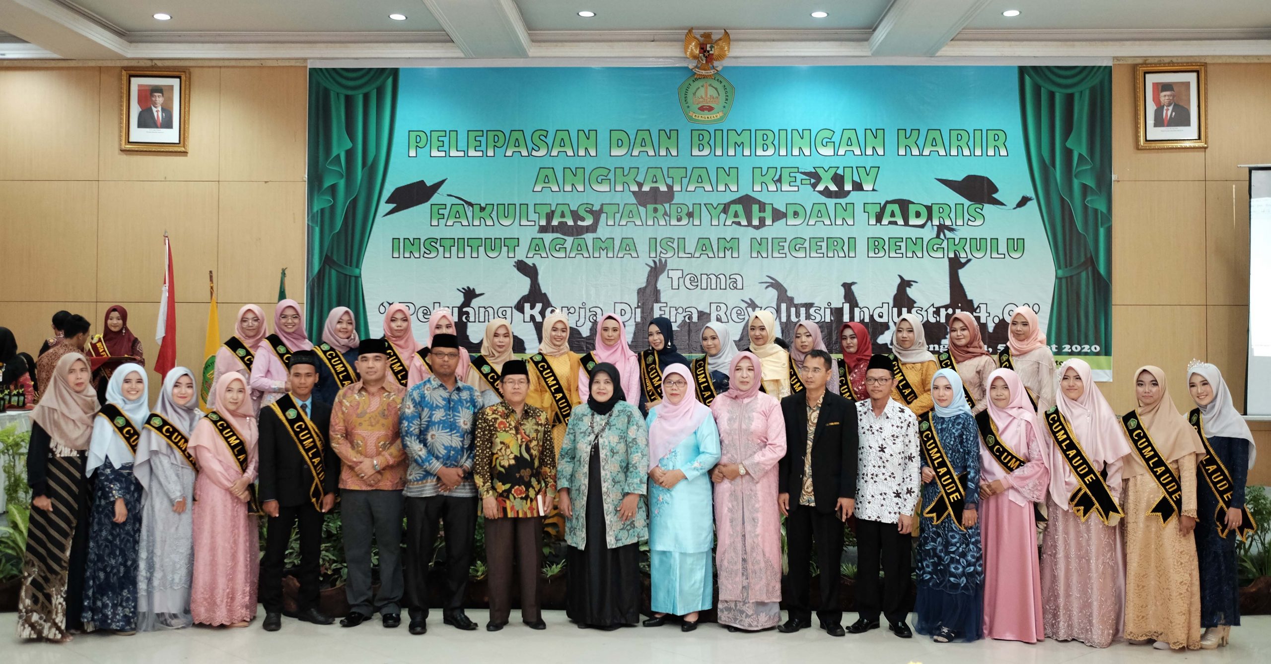 Berandang.com- Bengkulu. Kegiatan Pelepasan dan Bimbingan Karir angkatan Ke-XlV Fakultas Tarbiyah dan Tadris Institut Agama Islam (IAIN) Negeri Bengkulu dengan tema “Peluang Kerja di Era Revolusi Industri 4.0” kegiatan yang diselenggarakan oleh FTT ini dihadiri oleh Dekan FTT Dr. Zubaedi, M.Ag , Wadek l, Wadek ll, dan Wadek lll beserta Kajur dan Kaprodi. Kegiatan ini merupakan kegiatan rutin setiap tahun sebelum pagelaran wisuda dilaksanakan. Sekitar 350 alumni hadir dalam kegiatan ini yang digelar di Hotel Grage Horizon Bengkulu. Kamis (05/03)