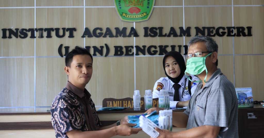 Berandang.com- Bengkulu. Institut Agama Islam Negeri Bengkulu turut berkontribusi dalam Pencegahan Covid-19 yang semangkin membahayakan sampai saat ini, Ribuan masker dan Hand Sanitizer dibagikan kepada pegawai dan karyawan IAIN Bengkulu yang terus bekerja secara bergantian. Menurut Kabag Umum Edi Irwansyah, S.Sos, pembagian masker gratis ini demi menjaga keselamatan jiwa pegawai IAIN Bengkulu yang masih bekerja. Sesuai Edaran Kementrian Agama RI seluruh civitas akademika IAIN Bengkulu di himbau untuk bekerja dirumah tapi diharuskan pelayanan tertentu tetap harus dilaksanakan dengan sistem Piket. Kamis (09/04)
