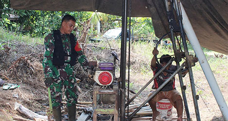 “Proses pengeboran di Desa Talang Sebaris ini memerlukan waktu lebih lama karena alat bor sering kali terbentur batu di kedalaman tertentu. Hingga saat ini, sudah tiga lubang pengeboran dilakukan, tetapi masih menemui batuan keras di dalam tanah,” tambah Letkol Dedy.