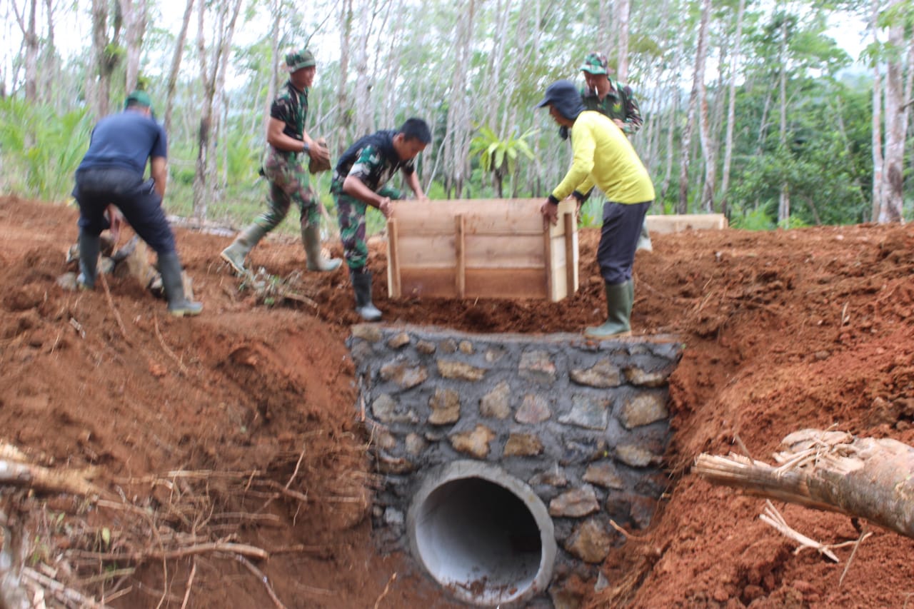 Berandang.com- Seluma – Program Tentara Manunggal Membangun Desa (TMMD) ke-122 Kodim 0425/Seluma yang berlangsung di Desa Talang Sebaris, Kecamatan Air Periukan, Kabupaten Seluma, kini telah memasuki tahapan pemasangan gorong-gorong di 8 titik. Kegiatan ini merupakan bagian dari pembukaan badan jalan sepanjang 1.535 meter yang bertujuan untuk meningkatkan aksesibilitas masyarakat menuju lahan perkebunan. (Jum’at, 11/10/2024)