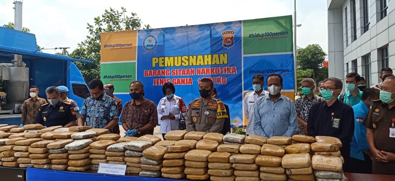 kegiatan pemusnahan BB Ganja 301 KG di pimpin langsung oleh KA BNN RI Drs. Heru Winarko, S.H didampingi Kepala BNN Banten Brigjen Pol Hendri Marpaung, Kapolda Banten Irjen Pol Drs Fiandar beserta Forkopimda Provinsi Banten.