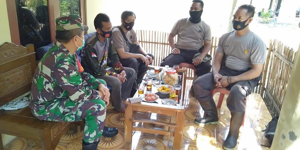 Tampak Kapten Infanteri Iskandar, Perwira Poskotis TMMD Reguler, Kepala Desa Kalinusu, Wasid (44), dan anggota Satgas TMMD BKO Polres Brebes, di kediaman Kepala Dusun Karanganyar, Desa Kalinusu, Mukhsinin (41). Minggu (27/9/2020).