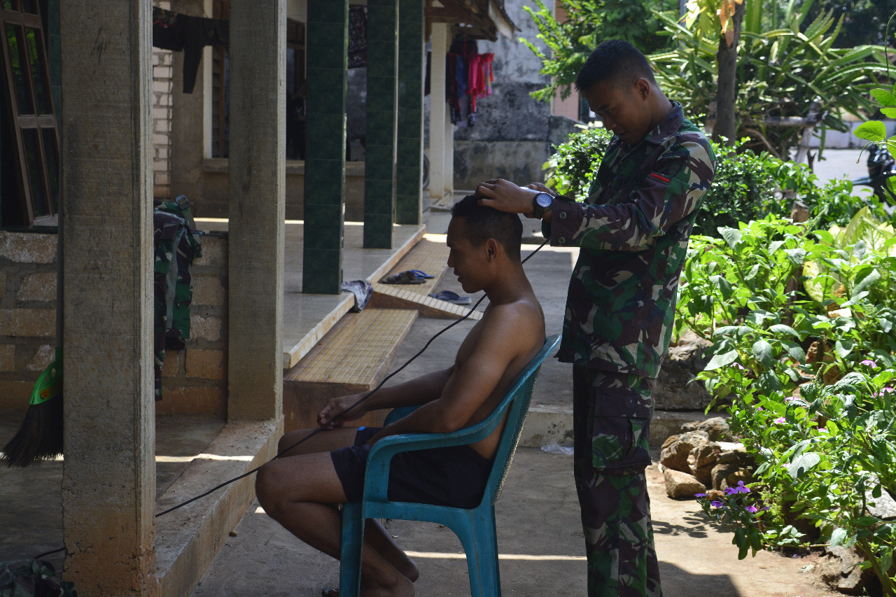 Layanan pangkas rambut gratis dilakukan untuk membantu masyarakat di Desa Tebluru agar tetap terlihat rapi. Layanan pangkas rambut ini pun juga memanfaatkan keahlian anggota Satgas TMMD untuk bisa membantu masyarakat.